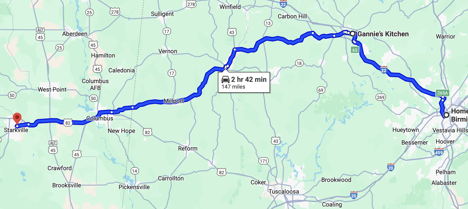 Onward. I took a northern route – 35 miles more on an interstate – 22 in this case, toward Jasper to the aptly named home of Gannie’s Kitchen.