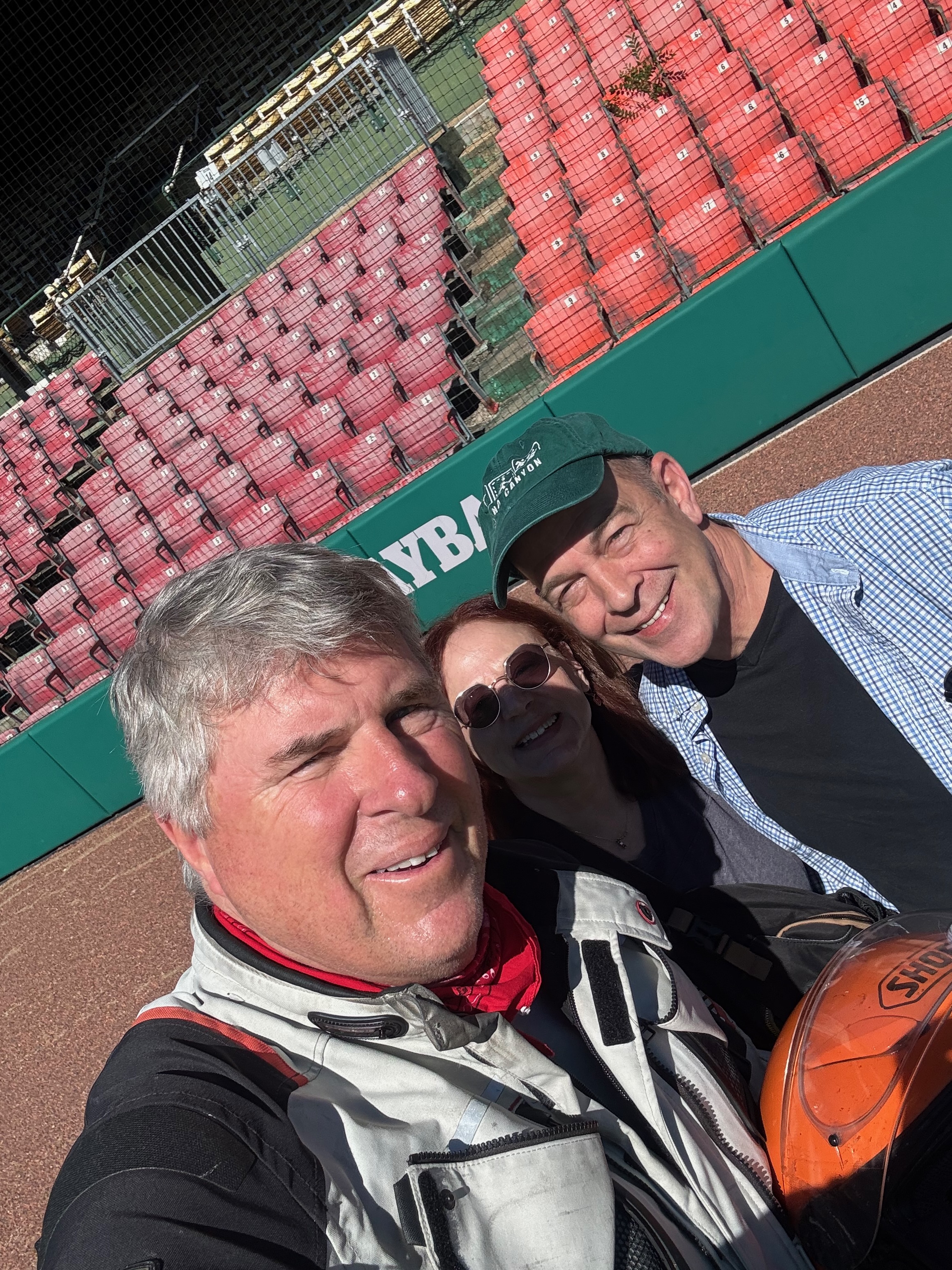 There were three people on the field, and as I started stripping off motorcycle jacket and helmet, one disappeared into a door and two began walking off the field. Say hello to Greg and Cindy Pietrus, much like I did.