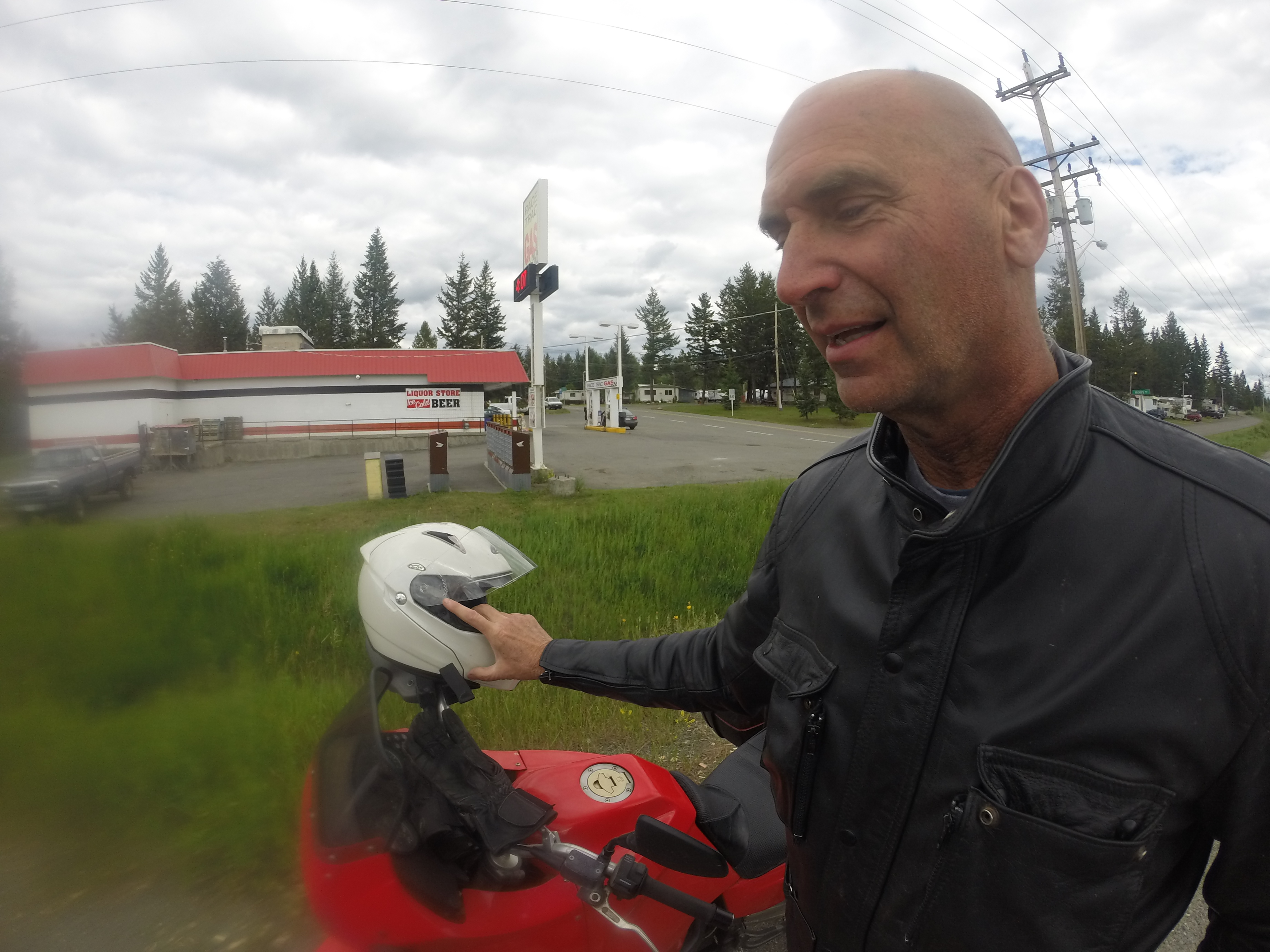 In preparing to ride to Quesnel from Kelowna, Brett told the story of Christmas Eve with his family some moons ago and traveling over Highway 24 in deep snow. No other cars for hours. And Brett’s car catches FIRE as the carburetor froze, dumping gas over the side which ignited. Brett takes it apart, sees that the float is melted — it is sub-freezing with no where to go and no help in sight. In the dark, he takes his pocket knife out, carves a new float from a pine branch, wires it together, gets the car started and home. “We lived” is all he said. And we all knew he was serious.