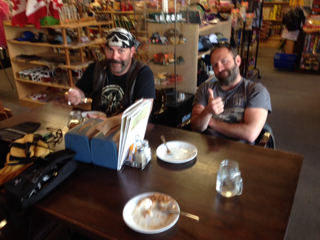 The majestic skyline grew and gas grew a little concerning – did we have the gas for Haines Junction…, uh, no. So Otter Falls was a great and expected gas find, but little did we expect great pie. Pie and 5-hour Energy for lunch…, yum!