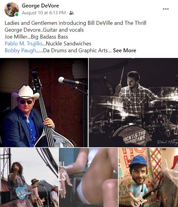 This year, George DeVore somehow became Bill DeVille and the Thrills. And check out this BAND! Some Reckless Motorcars, if you get my drift. Bobby, Joe, Pablo, Ben joined, too from the Refugees and BAM!